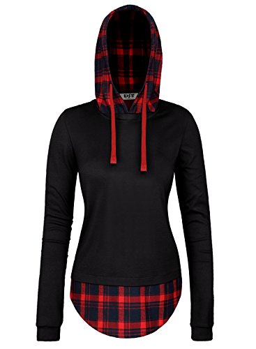 DJT Women Plaid Checked Long Sleeve Casual Slim Tunic Hoodie Pullover Jumper Tops Blouse
