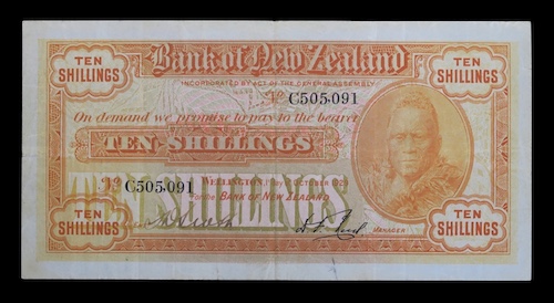 Bank of New Zealand, 1929 Ten Shillings. Sold.